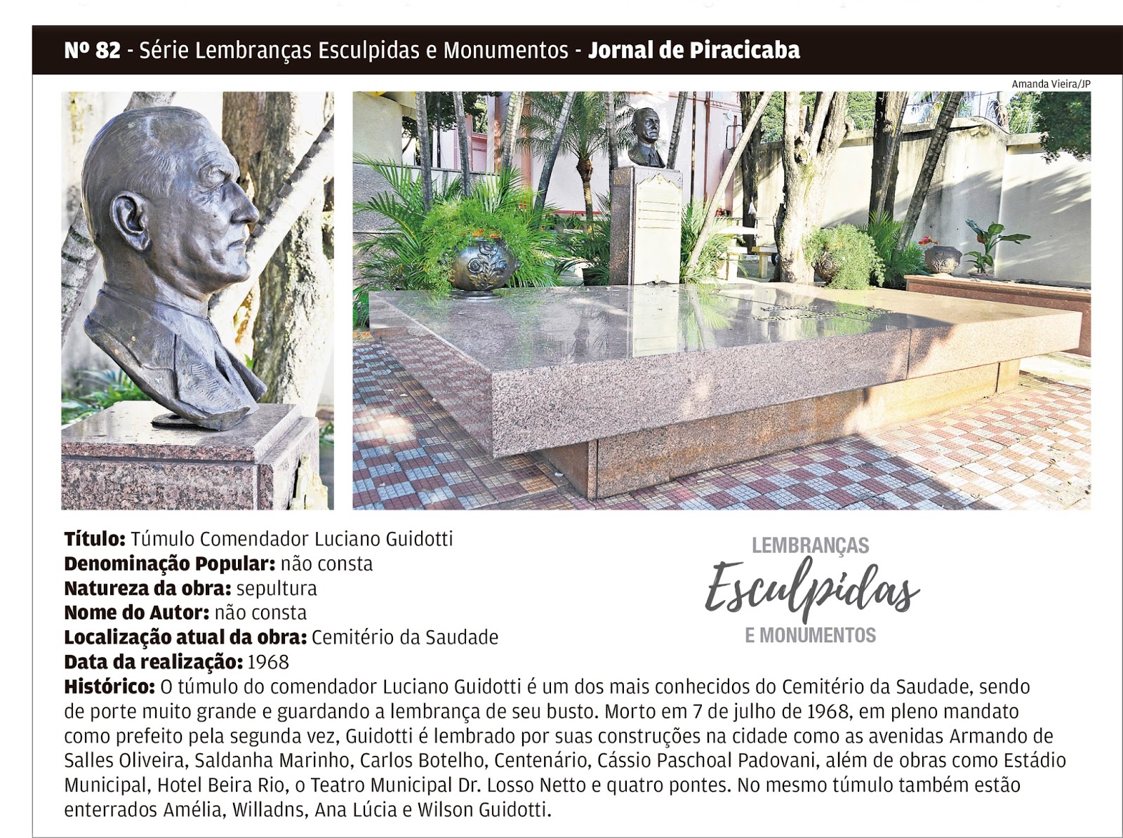 No seu entorno ficaram a Casa da Câmara e a Cadeia. Em 1816 ele situava-se no centro da praça principal de Piracicaba, e "achando-se preparado, lavrado e oitavado, de madeira de cabreúva grosso, e composto com quatro braços de ferro, com seus argolões nas quatro faces, tendo em cima do capitel uma haste de ferro, sustentando um braço com um cutelo e uma bandeirinha no cimo, avendo-se preparado todo o terreno e o mais necessário para o levantamento do dito Pelourinho, com assistência de grande parte da nobreza". Nascia assim a Vila Nova da Constituição.